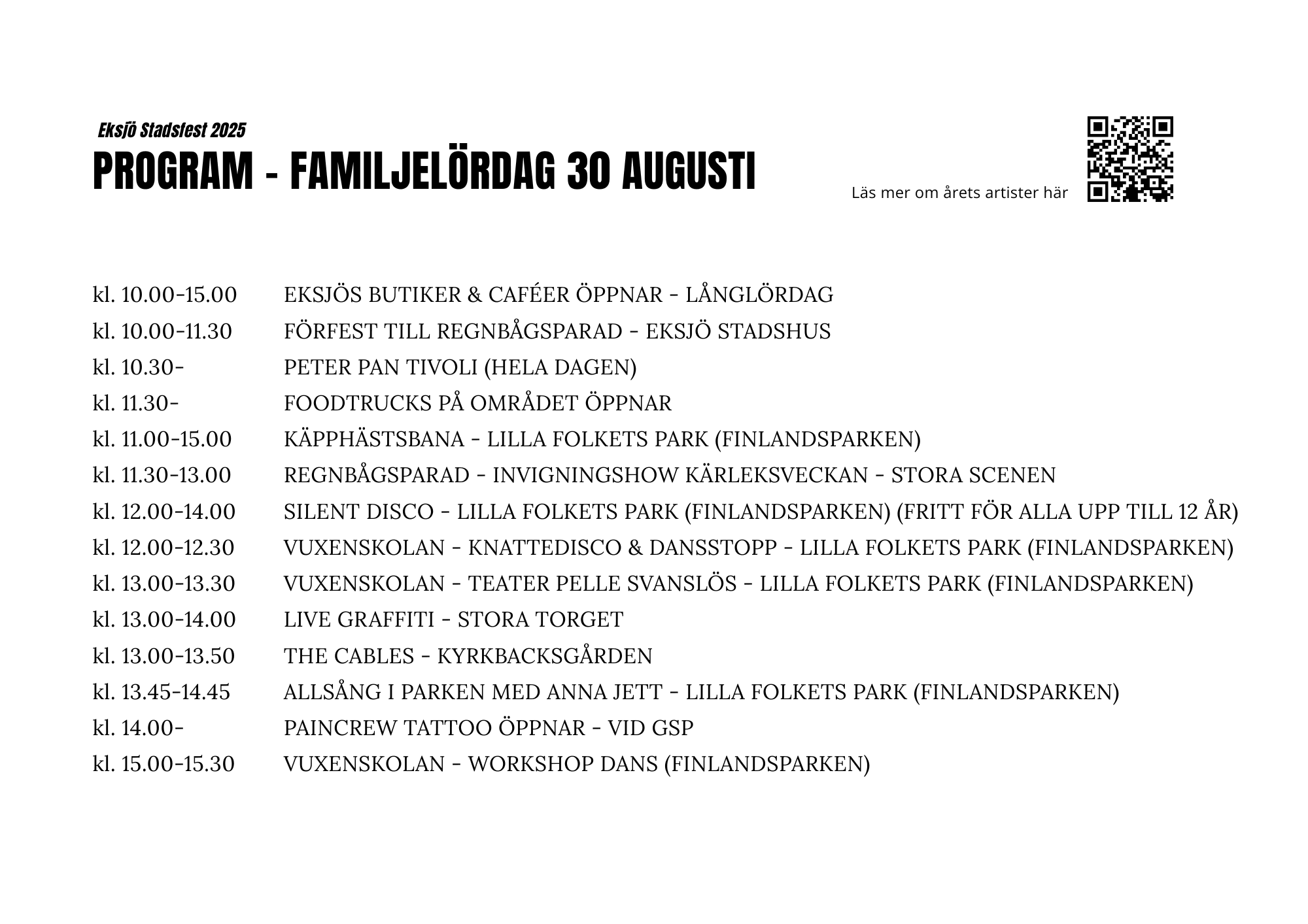 Oavsett om du vill dansa loss på Silent Disco, heja på i Regnbågsparaden, prova käpphästbanan eller njuta av teater och livemusik – här finns något för alla åldrar. Ta med familjen, vännerna och det goda humöret – vi ses i Eksjö!